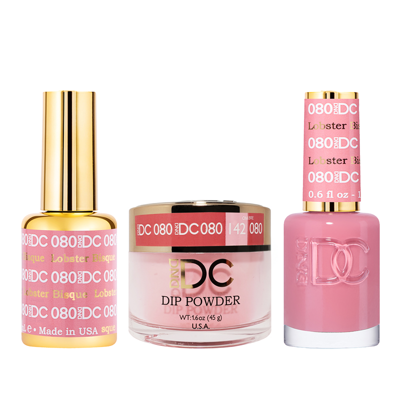 DND DC Trio 080 Lobster Bisque includes a gel polish, a matching lacquer and powder. The set provides a complete solution for a professional manicure with a long-lasting and beautiful color.