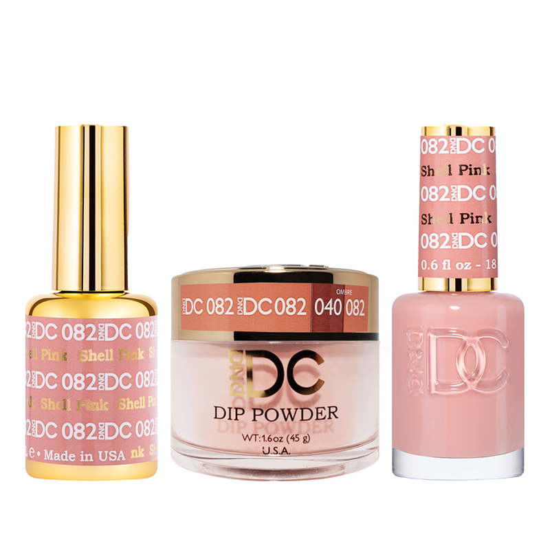 DND DC Trio 082 Shell Pink includes a gel polish, a matching lacquer and powder. The set provides a complete solution for a professional manicure with a long-lasting and beautiful color.
