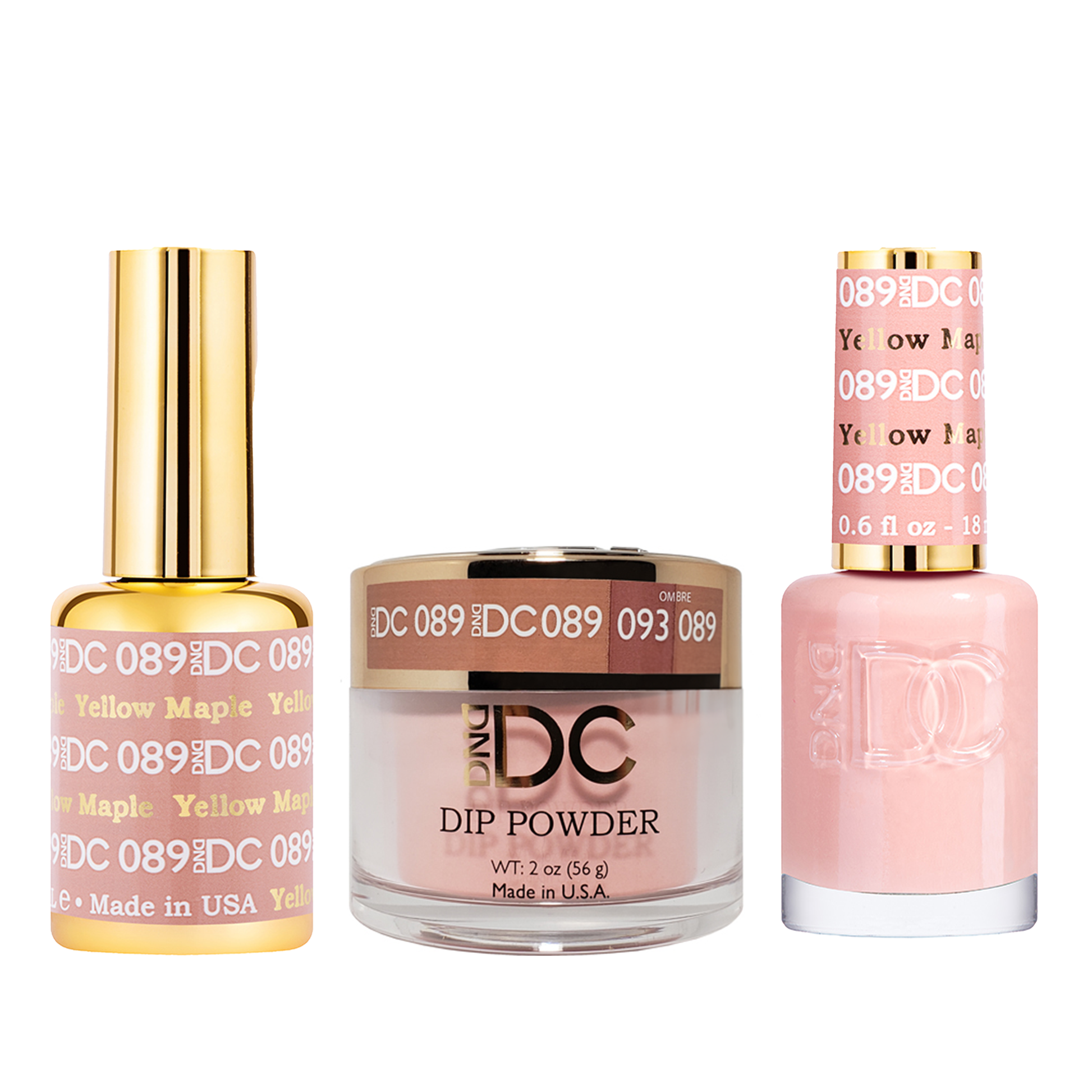 DND DC Trio 089 Yellow Maple includes a gel polish, a matching lacquer and powder. The set provides a complete solution for a professional manicure with a long-lasting and beautiful color.