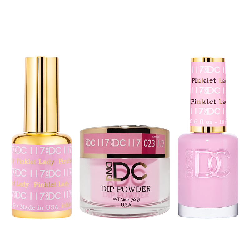DND DC Trio 117 Pinklet Lady includes a gel polish, a matching lacquer and powder. The set provides a complete solution for a professional manicure with a long-lasting and beautiful color.