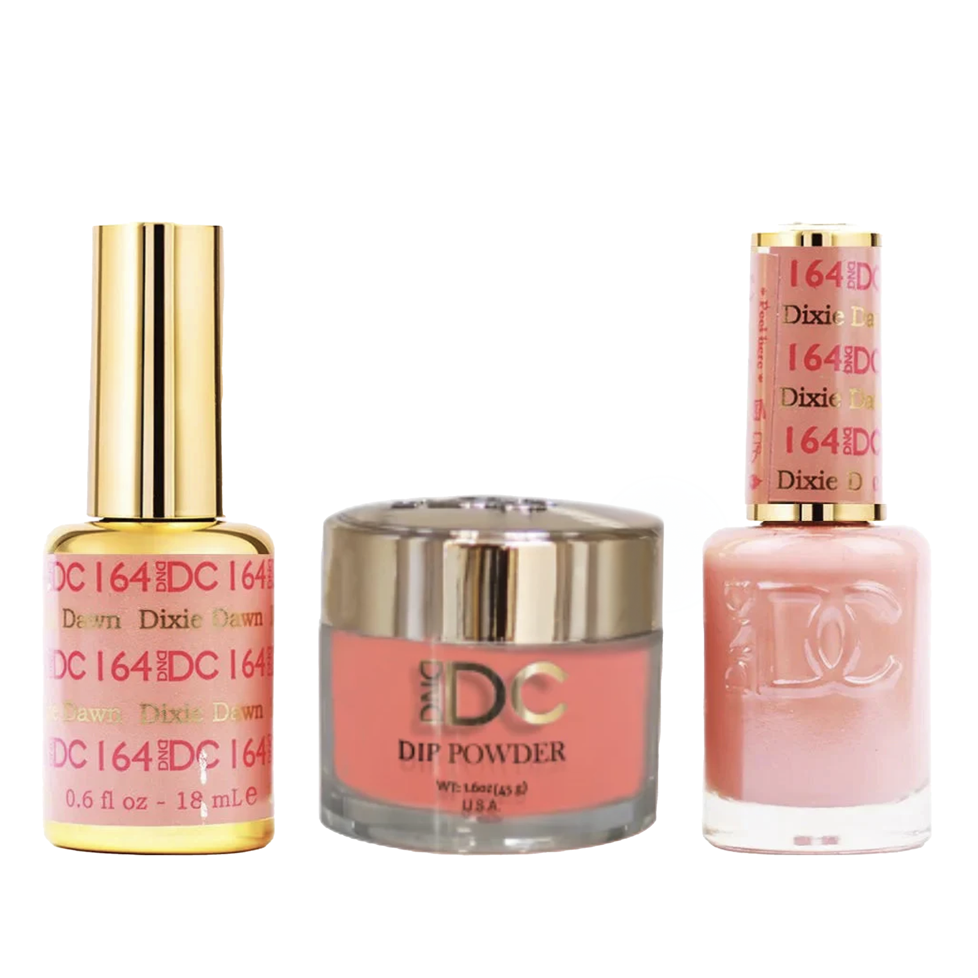 DND DC Trio 164 Essential includes a gel polish, a matching lacquer and powder. The set provides a complete solution for a professional manicure with a long-lasting and beautiful color.