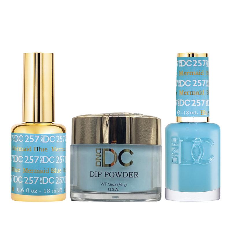 DND DC Trio 257 Essential includes a gel polish, a matching lacquer and powder. The set provides a complete solution for a professional manicure with a long-lasting and beautiful color.
