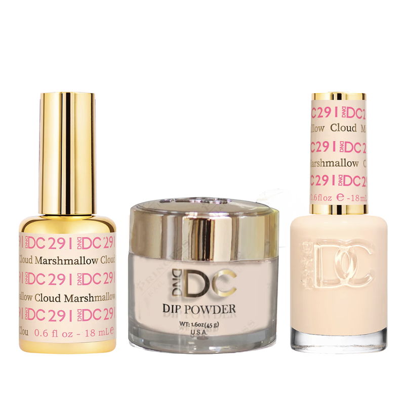 DND DC Trio 291 Marshmallow Cloud includes a gel polish, a matching lacquer and powder. The set provides a complete solution for a professional manicure with a long-lasting and beautiful color.