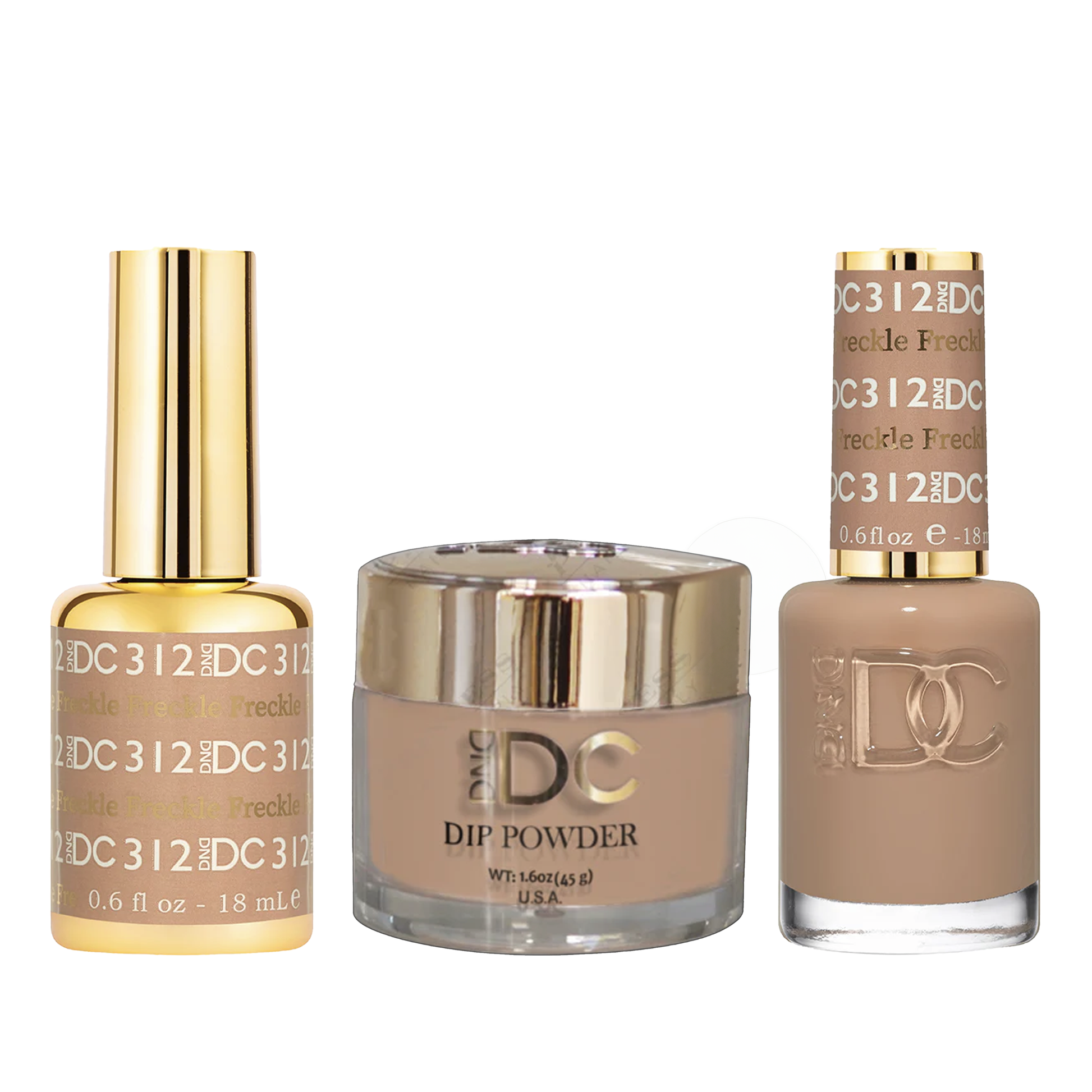 DND DC Trio 312 Freckle includes a gel polish, a matching lacquer and powder. The set provides a complete solution for a professional manicure with a long-lasting and beautiful color.