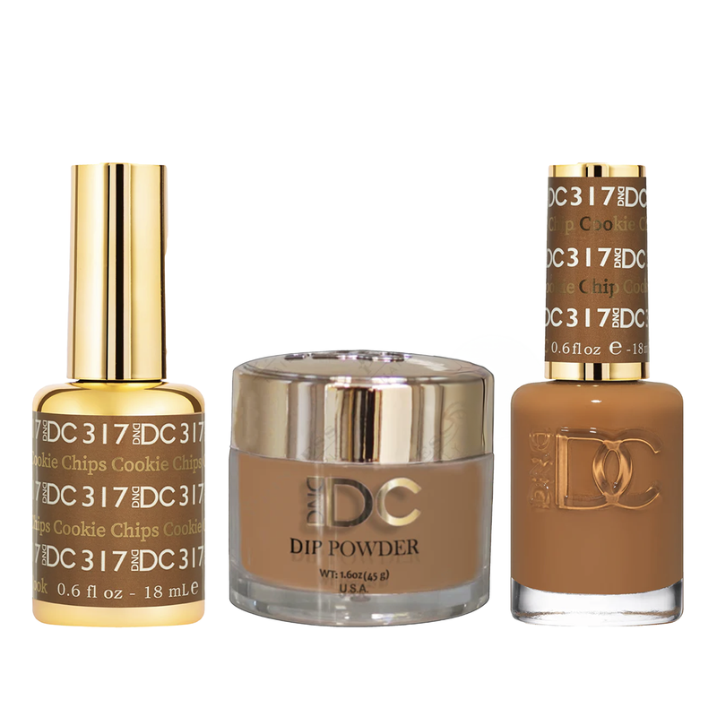 DND DC Trio 317 Cookie Chips includes a gel polish, a matching lacquer and powder. The set provides a complete solution for a professional manicure with a long-lasting and beautiful color.