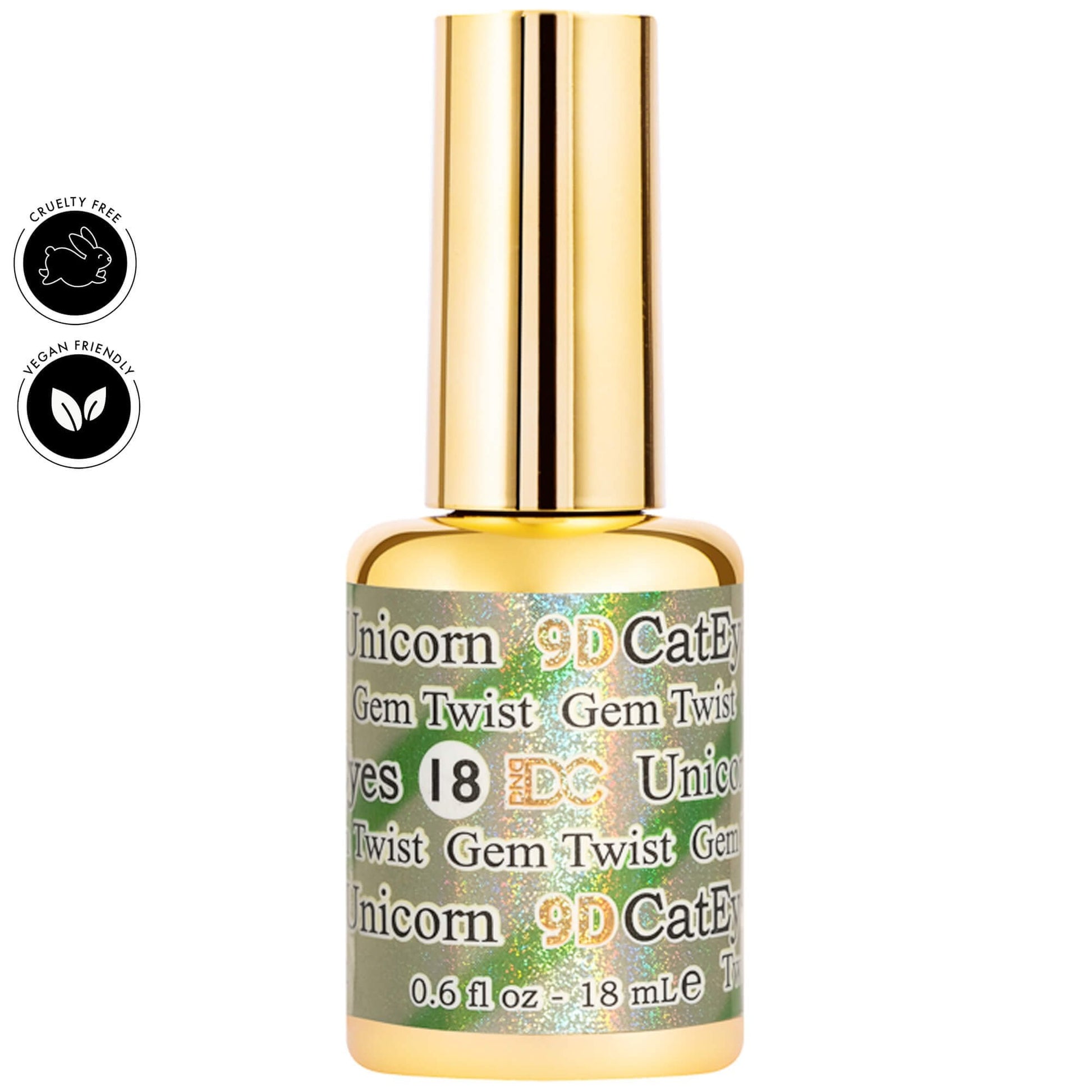 Transform your nails with DND Gel - 9D Cat Eye - 18 Gem Twist. This gel polish provides long-lasting color and a unique cat eye effect. Made with high-quality ingredients for a professional finish. Achieve perfect nails in minutes with DND Gel.