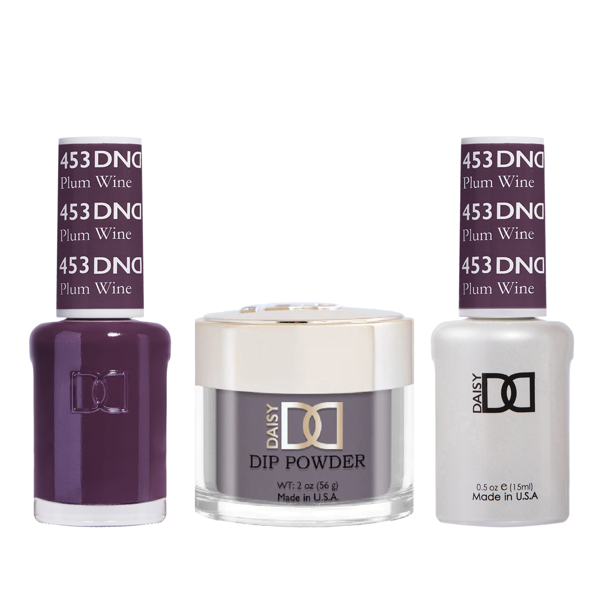 DND Trio 453 in Plum Wine is a professional-grade nail lacquer, dip powder, and gel polish set that is perfect for adding a touch of elegance to any look. This rich, deep shade of purple is sure to make heads turn. The set includes three formulas that work together to provide long-lasting, glossy color that is chip-resistant and easy to apply. With the combination of the dip powder, gel polish, and lacquer, you can expect your nails to look fresh for up to two weeks. Get ready to feel confident and stylish with this must-have shade of Plum Wine.