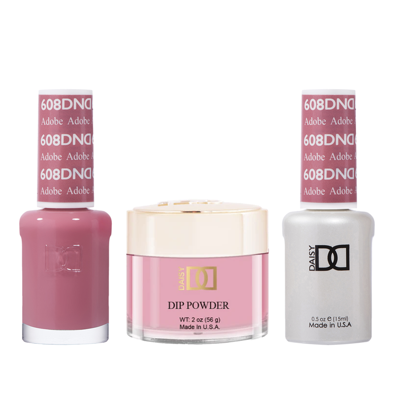 DND Trio - 608 Adobe includes a gel polish, a matching lacquer, and a dip powder. The set provides a complete solution for a professional manicure with a long-lasting and Pink color.