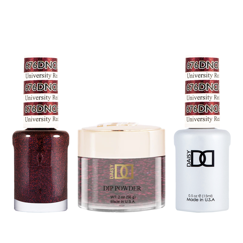DND Trio - 676 Universal Red includes a gel polish, a matching lacquer, and a dip powder. The set provides a complete solution for a professional manicure with a long-lasting and beautiful color.