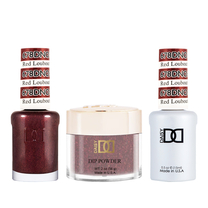 DND Trio - 678 Red Louboutin includes a gel polish, a matching lacquer, and a dip powder. The set provides a complete solution for a professional manicure with a long-lasting and beautiful color.