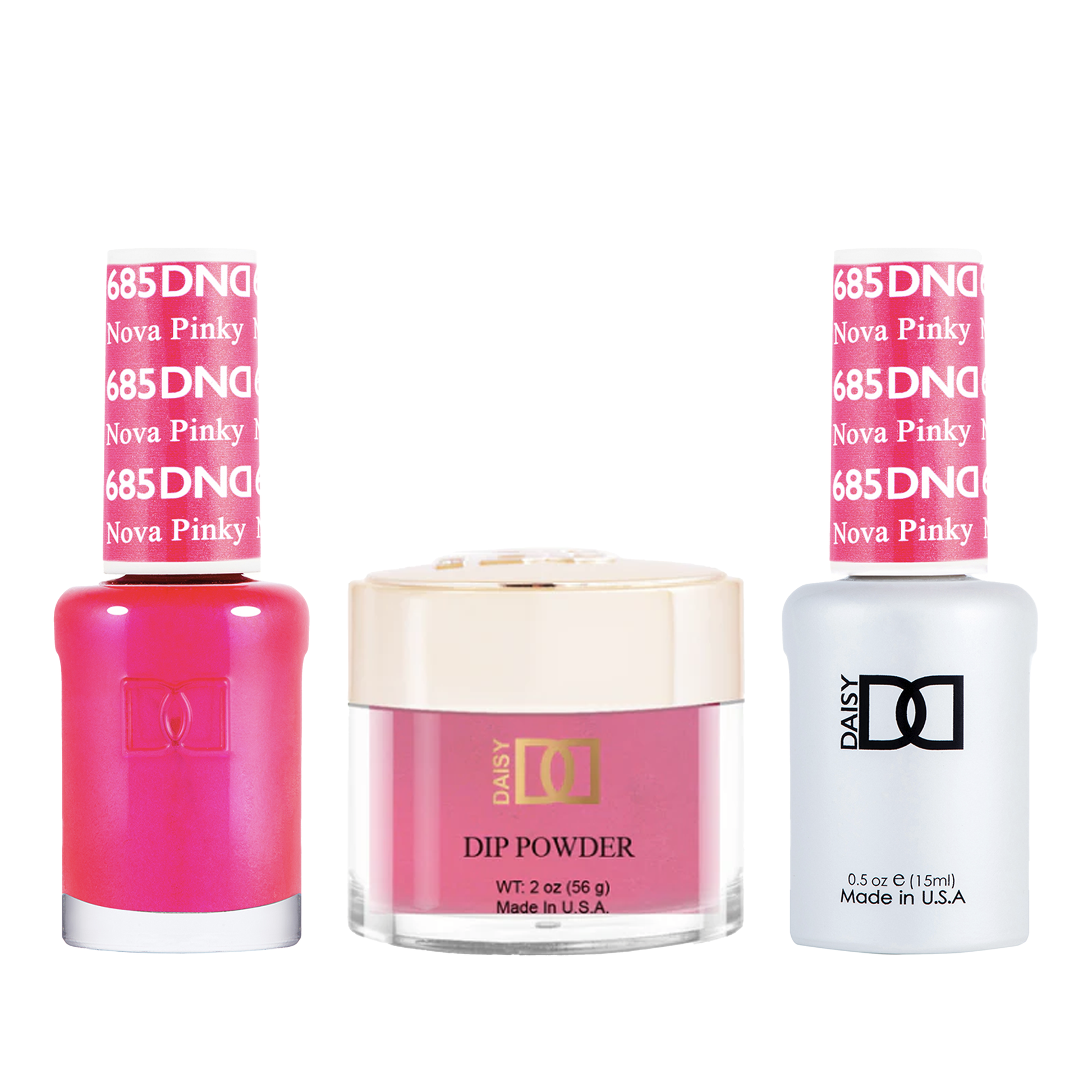 DND Trio - 685 Nova Pinky includes a gel polish, a matching lacquer, and a dip powder. The set provides a complete solution for a professional manicure with a long-lasting and beautiful color.