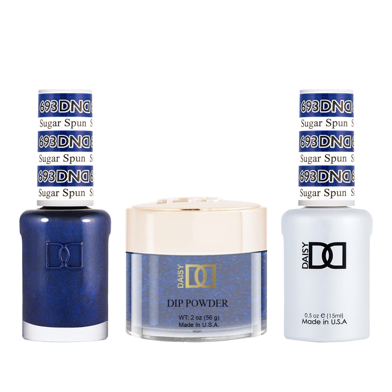 DND Trio - 693 Sugar Spun includes a gel polish, a matching lacquer, and a dip powder. The set provides a complete solution for a professional manicure with a long-lasting and beautiful color.