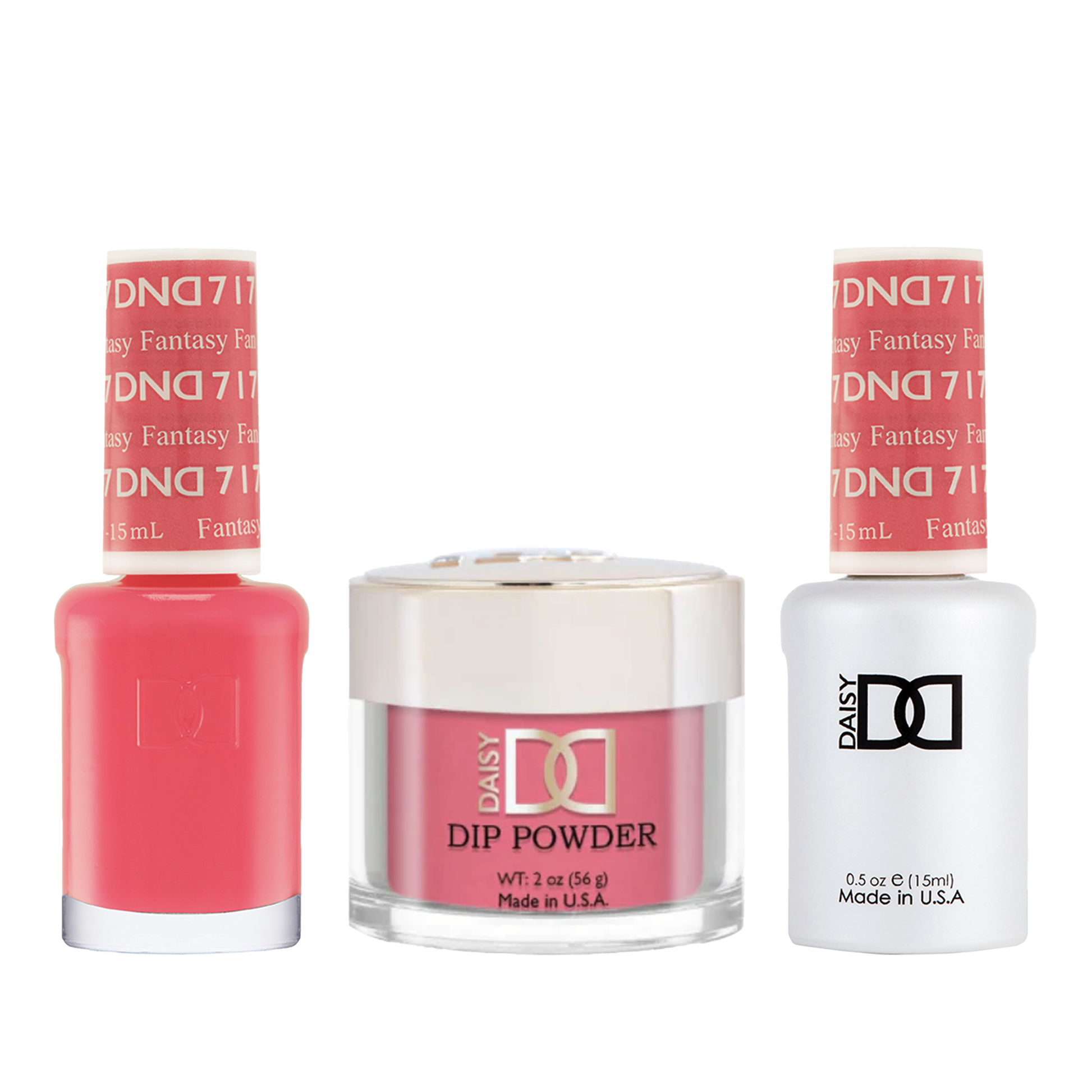 DND Trio - 717 Fantasy includes a gel polish, a matching lacquer, and a dip powder. The set provides a complete solution for a professional manicure with a long-lasting and beautiful color.