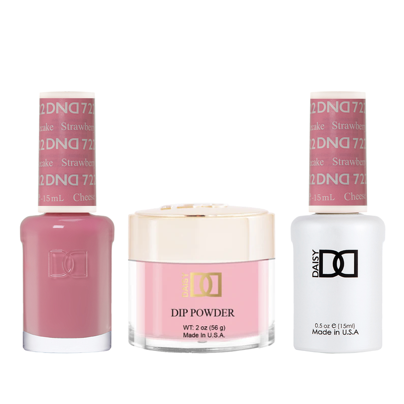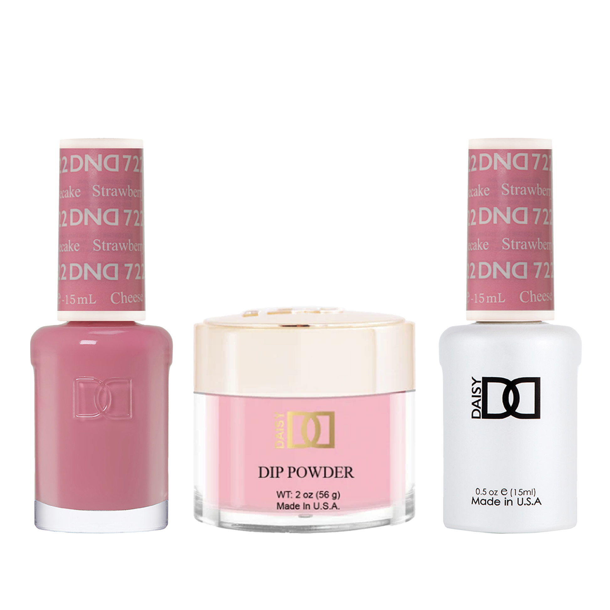 DND Trio - 722 Strawberry Cheescake includes a gel polish, a matching lacquer, and a dip powder. The set provides a complete solution for a professional manicure with a long-lasting and beautiful color.