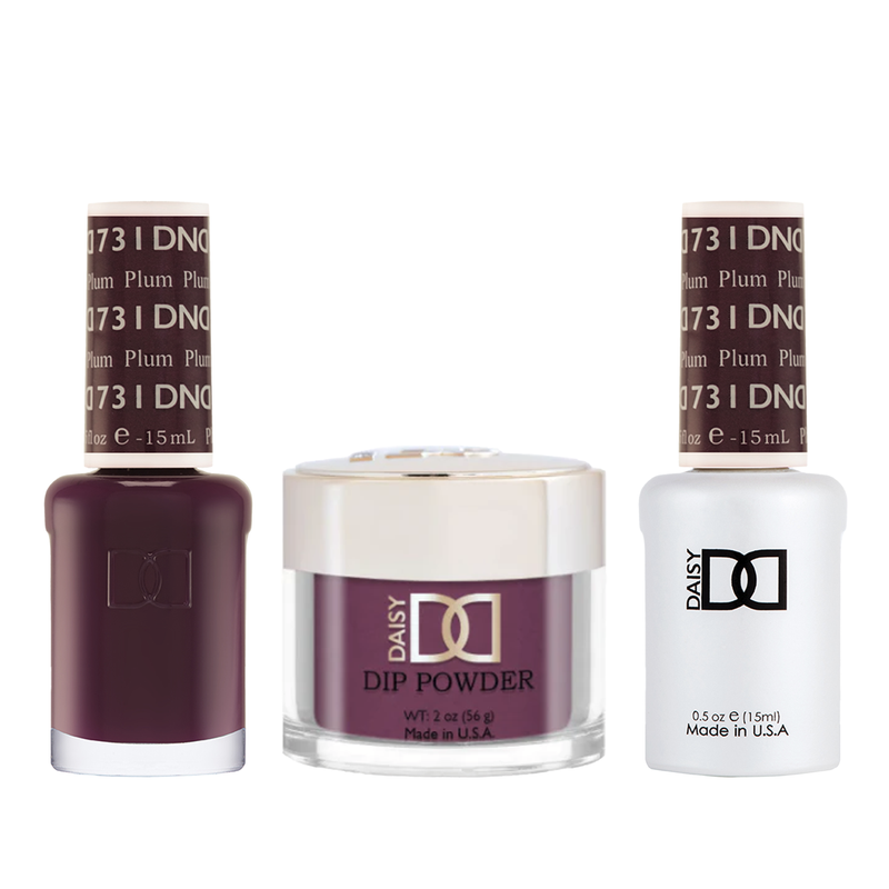 DND Trio - 731 Plum includes a gel polish, a matching lacquer, and a dip powder. The set provides a complete solution for a professional manicure with a long-lasting and beautiful color.