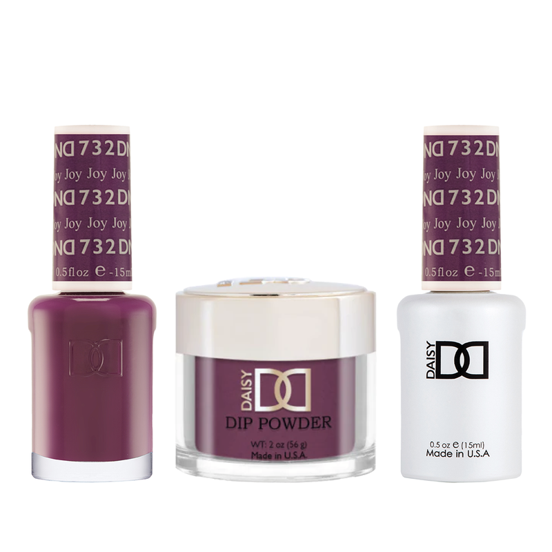 DND Trio - 732 Joy includes a gel polish, a matching lacquer, and a dip powder. The set provides a complete solution for a professional manicure with a long-lasting and beautiful color.