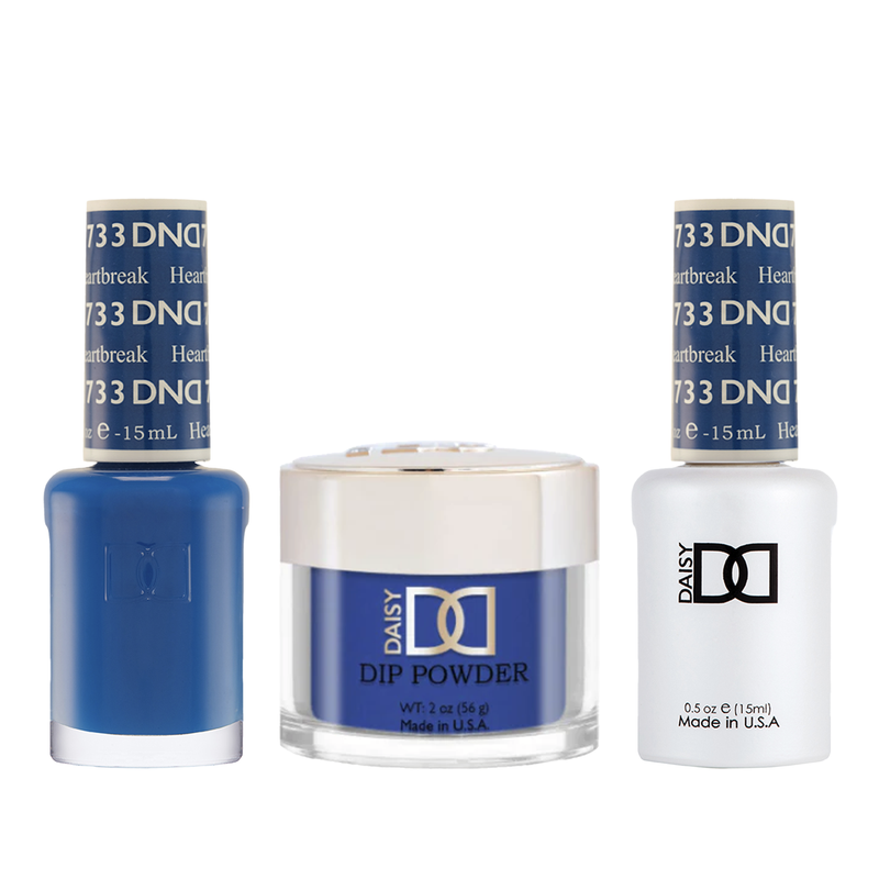 DND Trio - 733 Heartbreak includes a gel polish, a matching lacquer, and a dip powder. The set provides a complete solution for a professional manicure with a long-lasting and beautiful color.