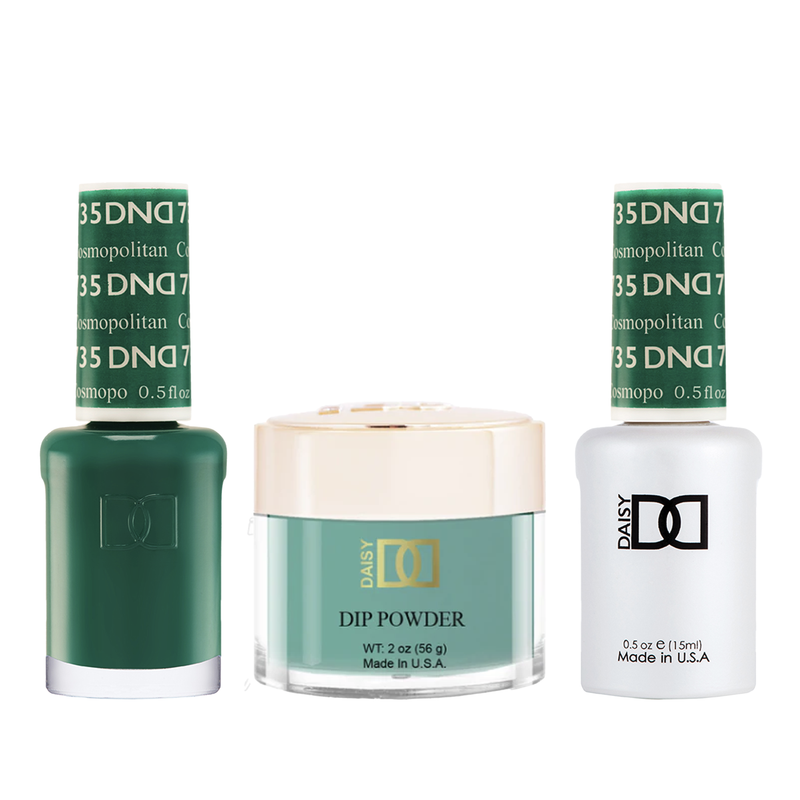 DND Trio - 735 Cosmopolitan includes a gel polish, a matching lacquer, and a dip powder. The set provides a complete solution for a professional manicure with a long-lasting and beautiful color.