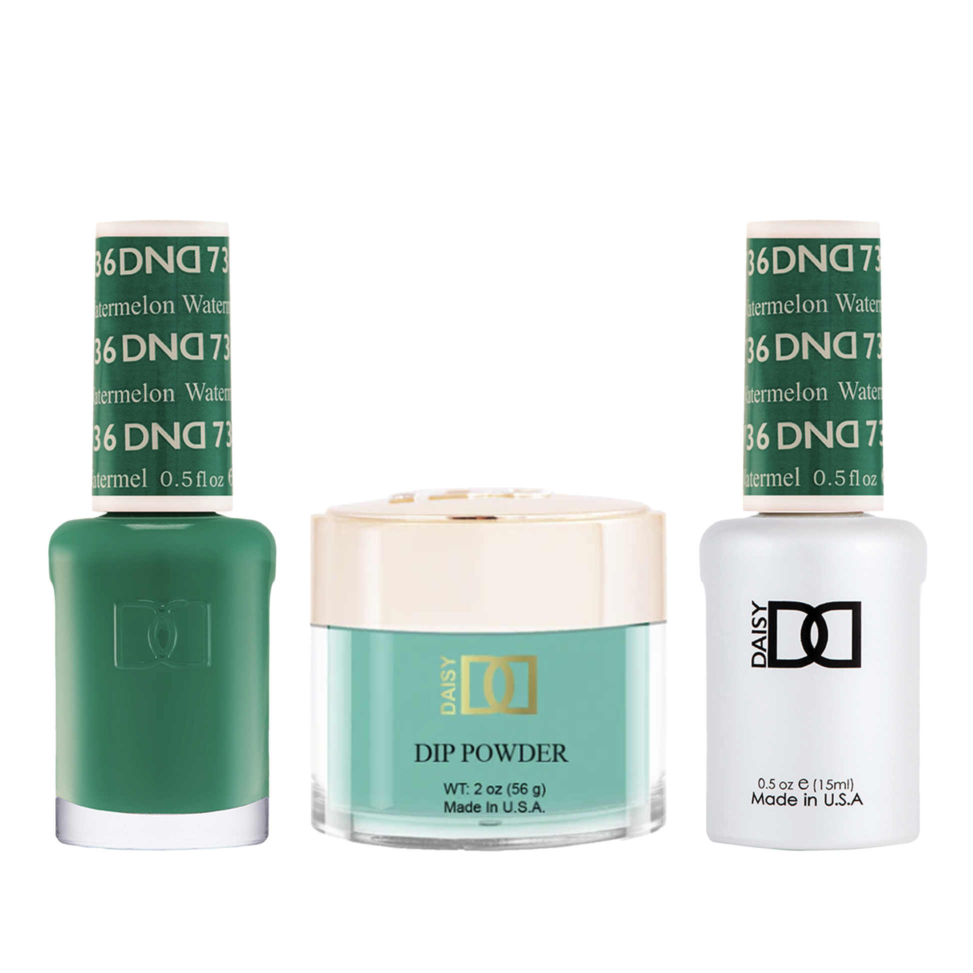 DND Trio - 736 Watermelon includes a gel polish, a matching lacquer, and a dip powder. The set provides a complete solution for a professional manicure with a long-lasting and beautiful color.