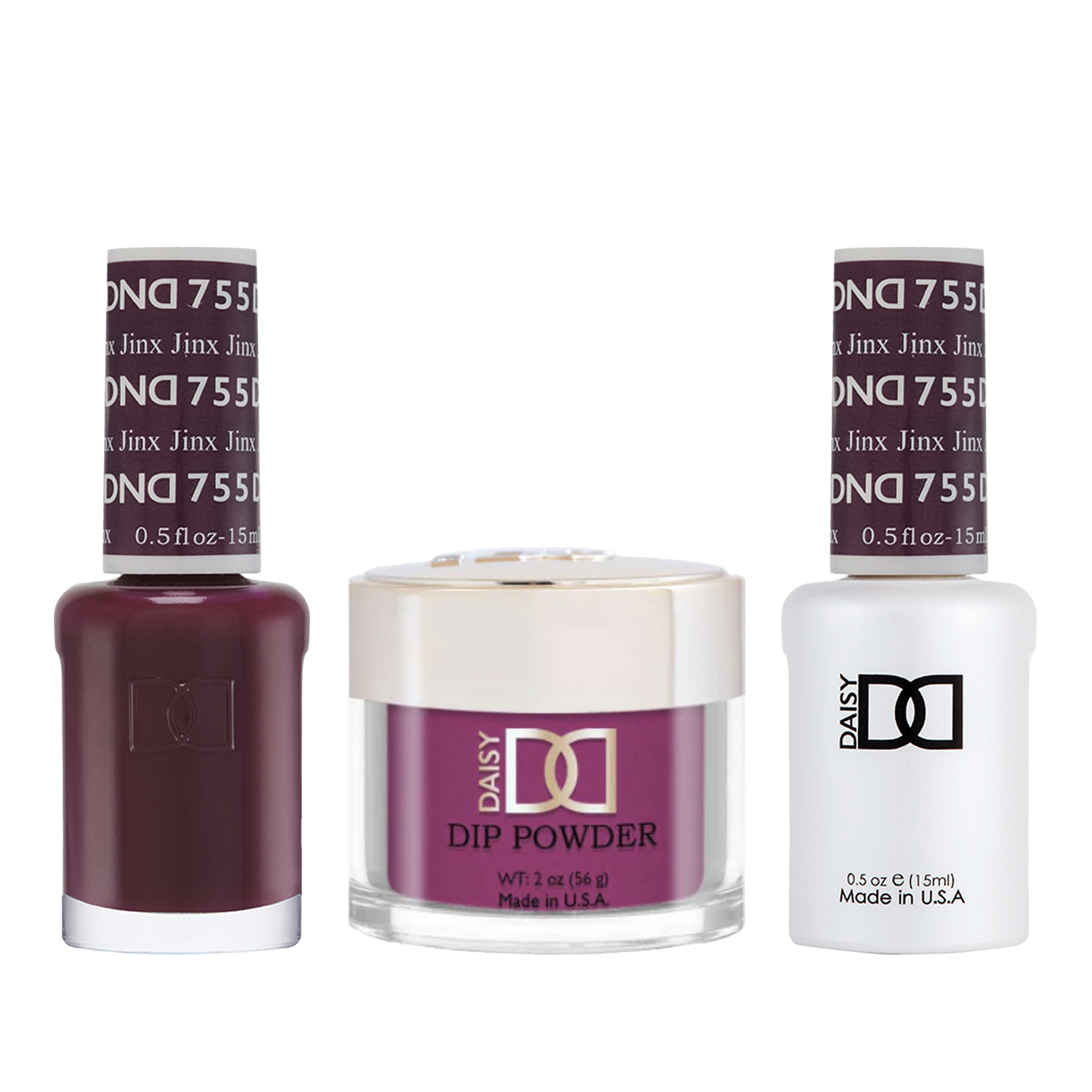 DND Trio - 755 Jinx includes a gel polish, a matching lacquer, and a dip powder. The set provides a complete solution for a professional manicure with a long-lasting and beautiful color.
