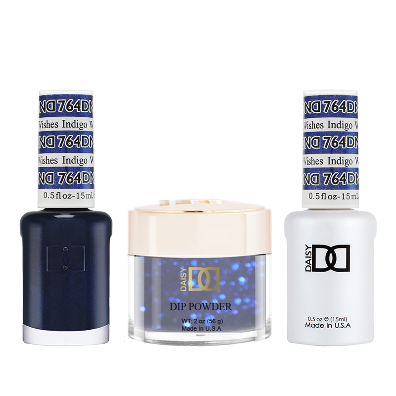 DND Trio - 764 Indigo Wishes includes a gel polish, a matching lacquer, and a dip powder. The set provides a complete solution for a professional manicure with a long-lasting and beautiful color.