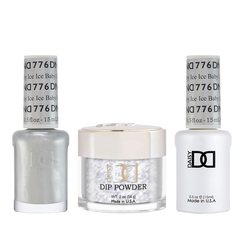 DND Trio - 776 Ice Ice Baby includes a gel polish, a matching lacquer, and a dip powder. The set provides a complete solution for a professional manicure with a long-lasting and beautiful color.