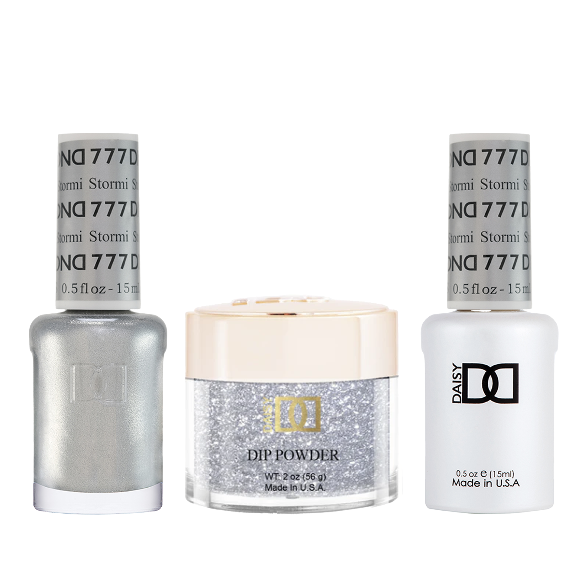 DND Trio - 777 Stormi includes a gel polish, a matching lacquer, and a dip powder. The set provides a complete solution for a professional manicure with a long-lasting and beautiful color.