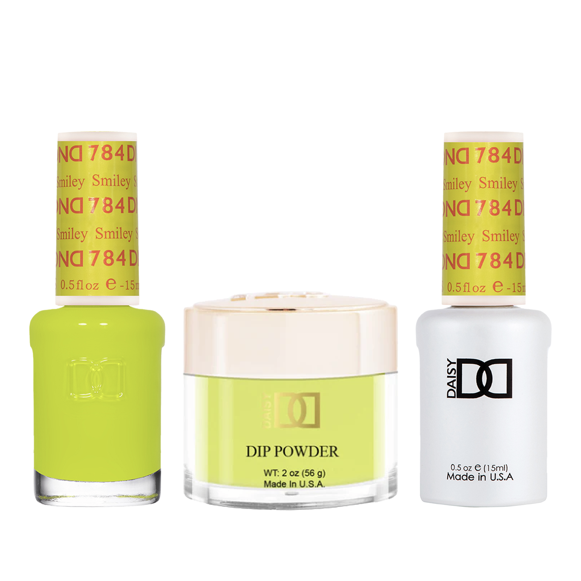 DND Trio - 784 Smiley includes a gel polish, a matching lacquer, and a dip powder. The set provides a complete solution for a professional manicure with a long-lasting and beautiful color.