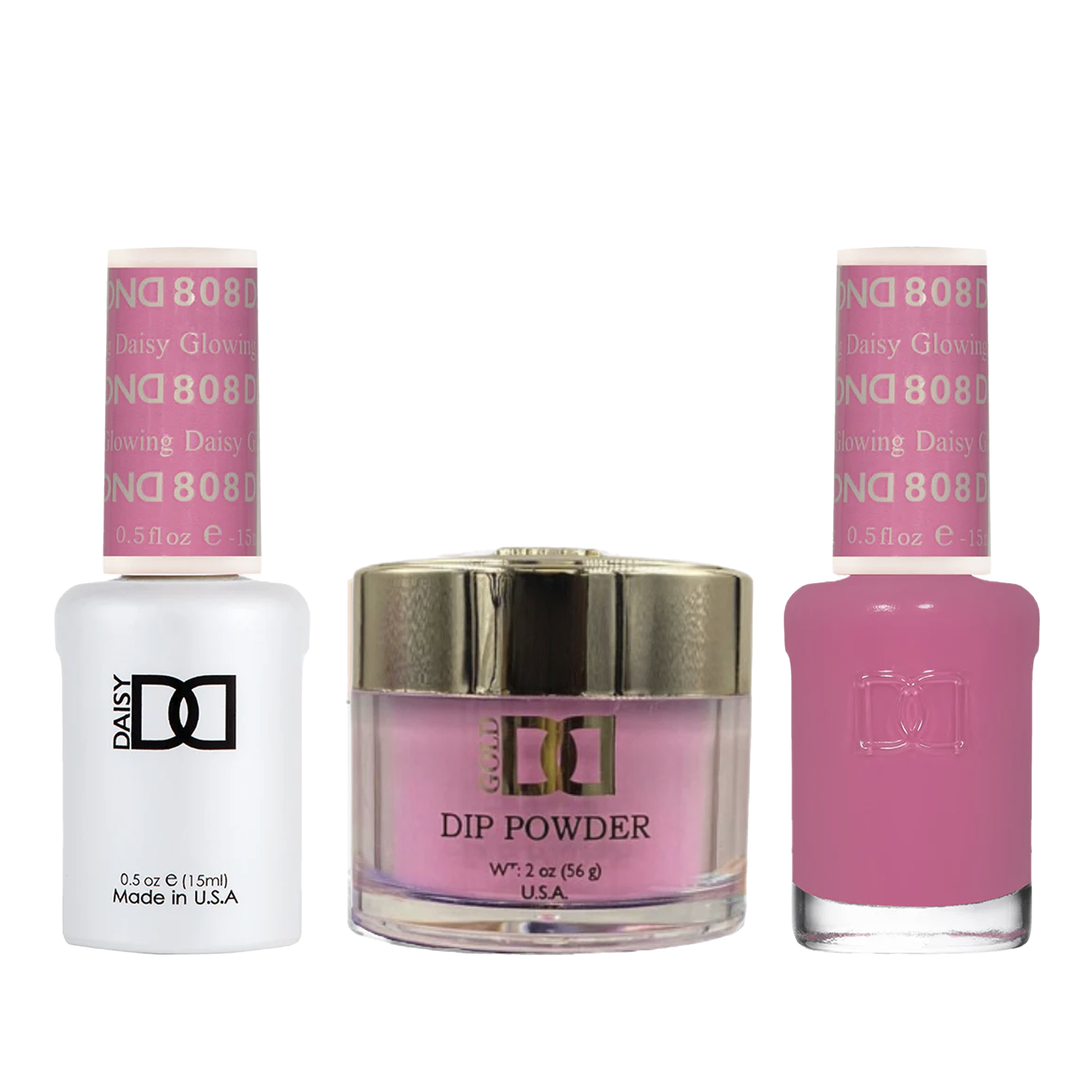 Get a flawless finish with the DND Trio - 808 Glowing Daisy. This set includes gel polish, nail polish, and dip powder, guaranteeing a long-lasting and vibrant color. Transform your nails with ease and expertise using our top-quality products.