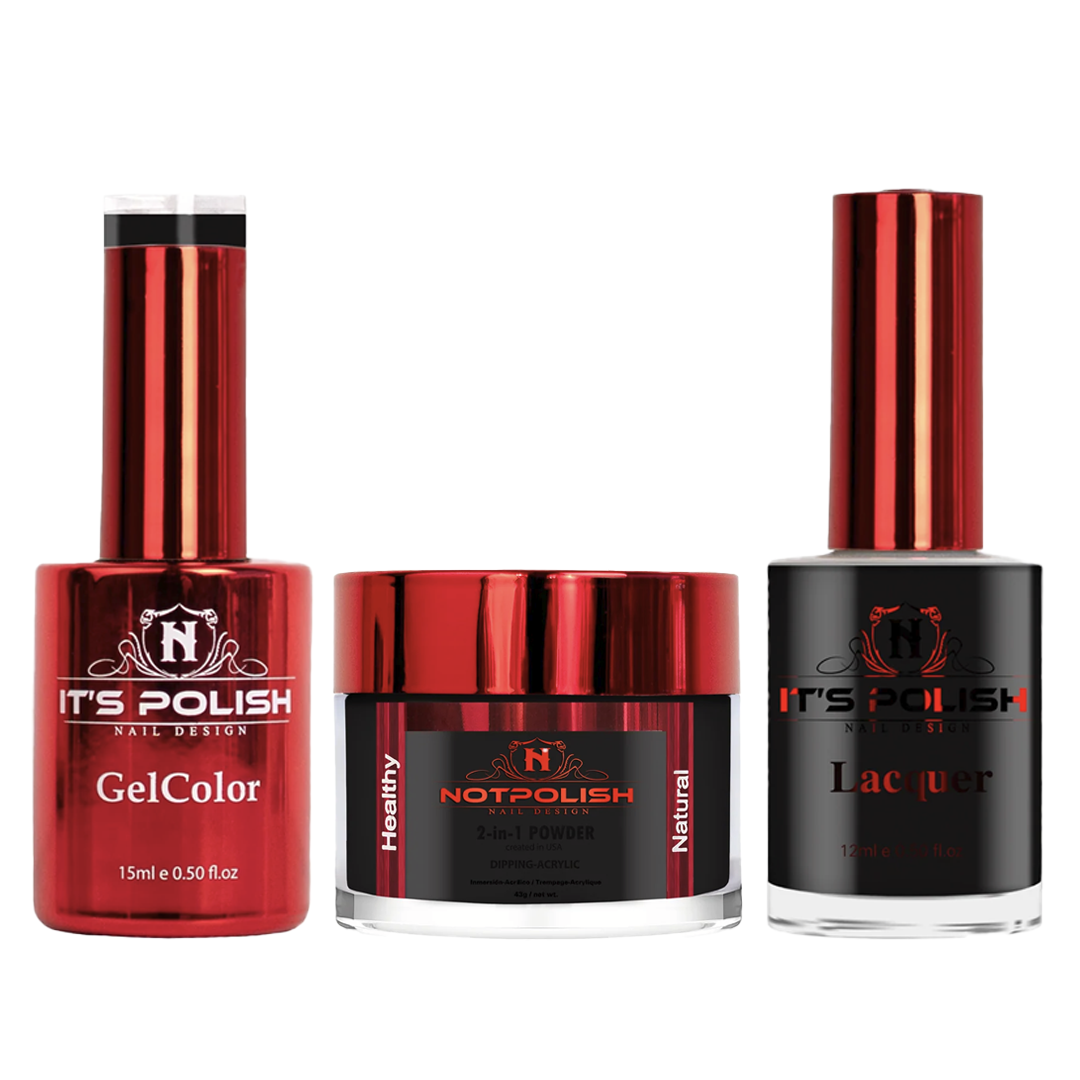 NOTPOLISH Trio - OG03 Black includes a gel polish, a matching lacquer and powder. The set provides a complete solution for a professional manicure with a long-lasting and beautiful color.