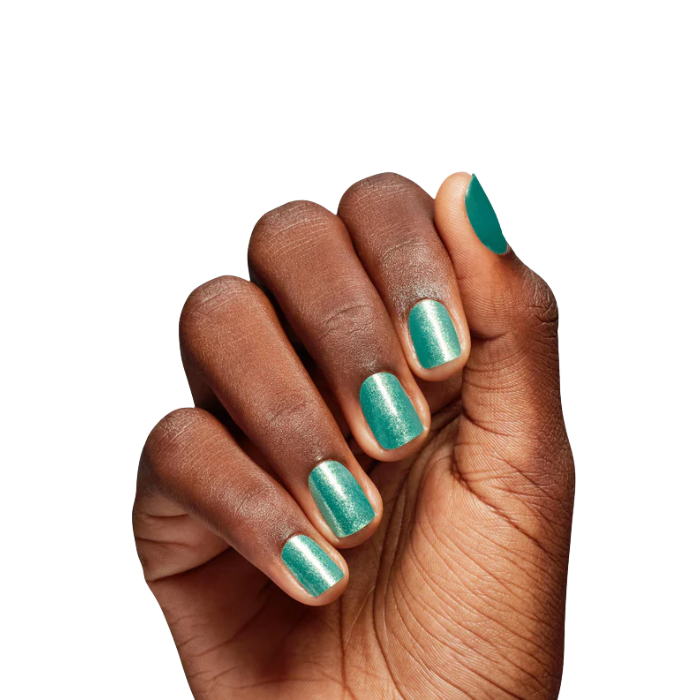 In my main character era. With this limited edition teal long-lasting nail polish, the spotlight's always on you. The bright blue base shares the stage with a reflective yellow-green shimmer to create a spectacular hue. Get ready to dazzle 'em!