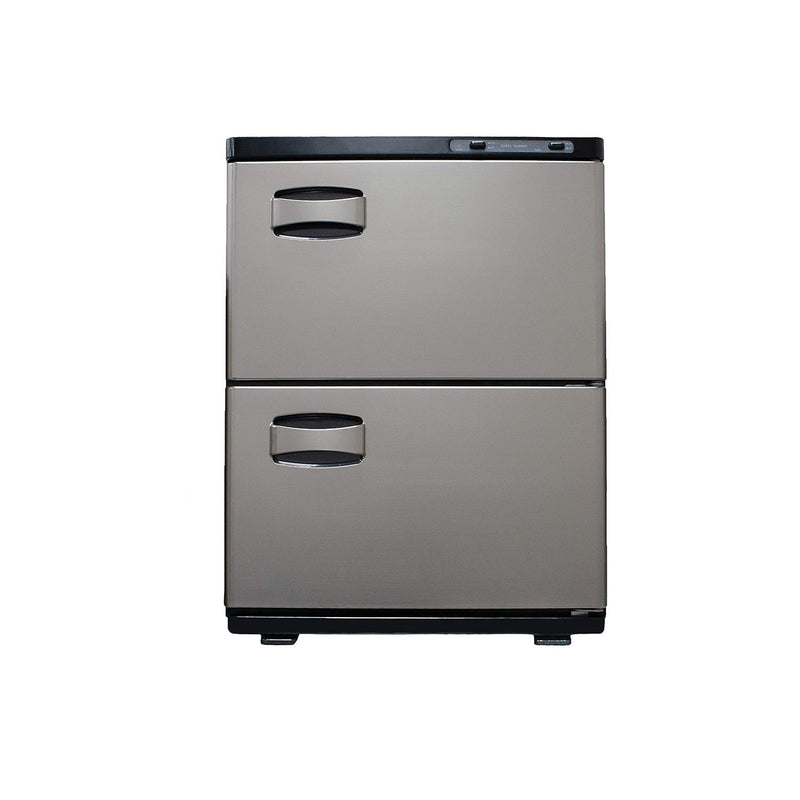 The 40L hot and UV towel cabinet offers extra capacity for high-volume spa services. Measuring 18 × 23 × 12 in, it features a black finish and US plug for easy setup. Reliable and durable, it ensures towels are always warm and hygienic.