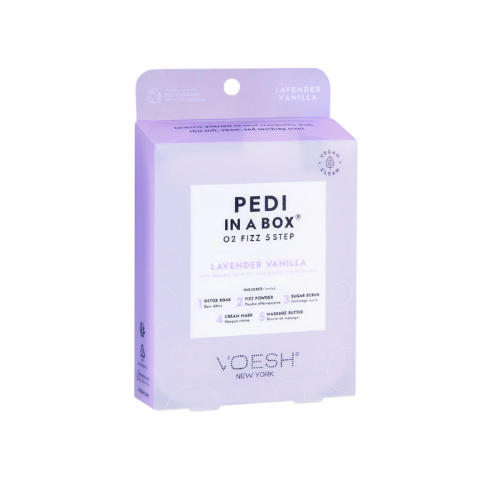 VOESH O2 PEDI IN A BOX IS A COMPLETE 5 STEP OXYGEN PEDICURE SYSTEM