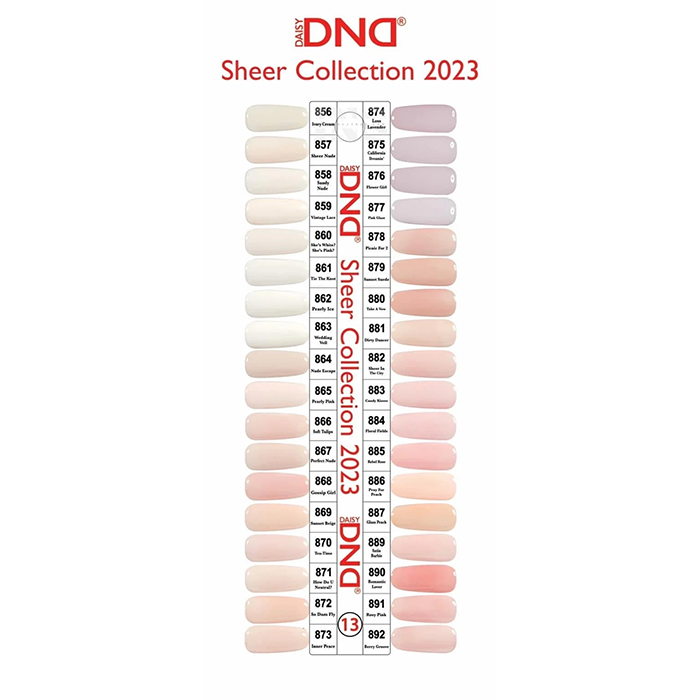 Elevate your nail game with DND Duo Gel Collection 13! This 36 piece set features a trendy range of shades (856-892) that will ensure your manicure stands out. And, as a special bonus, you'll receive a free chart to easily mix and match colors for your perfect look. Upgrade your collection today!