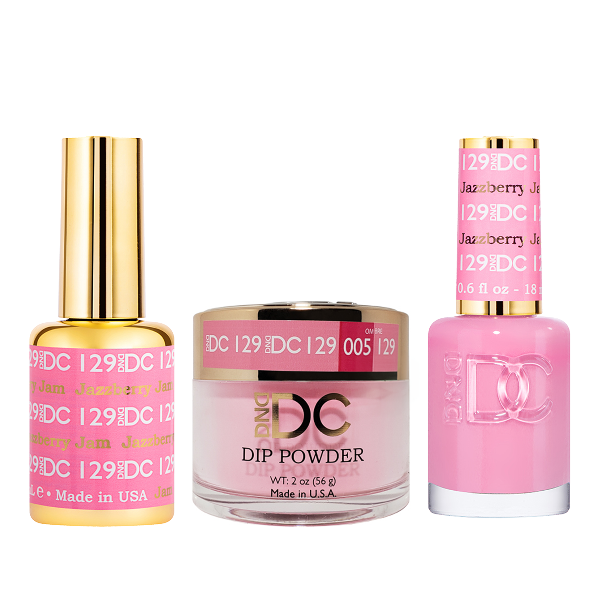 DND DC Trio 129 Jazzberry Jam includes a gel polish, a matching lacquer and powder. The set provides a complete solution for a professional manicure with a long-lasting and beautiful color.