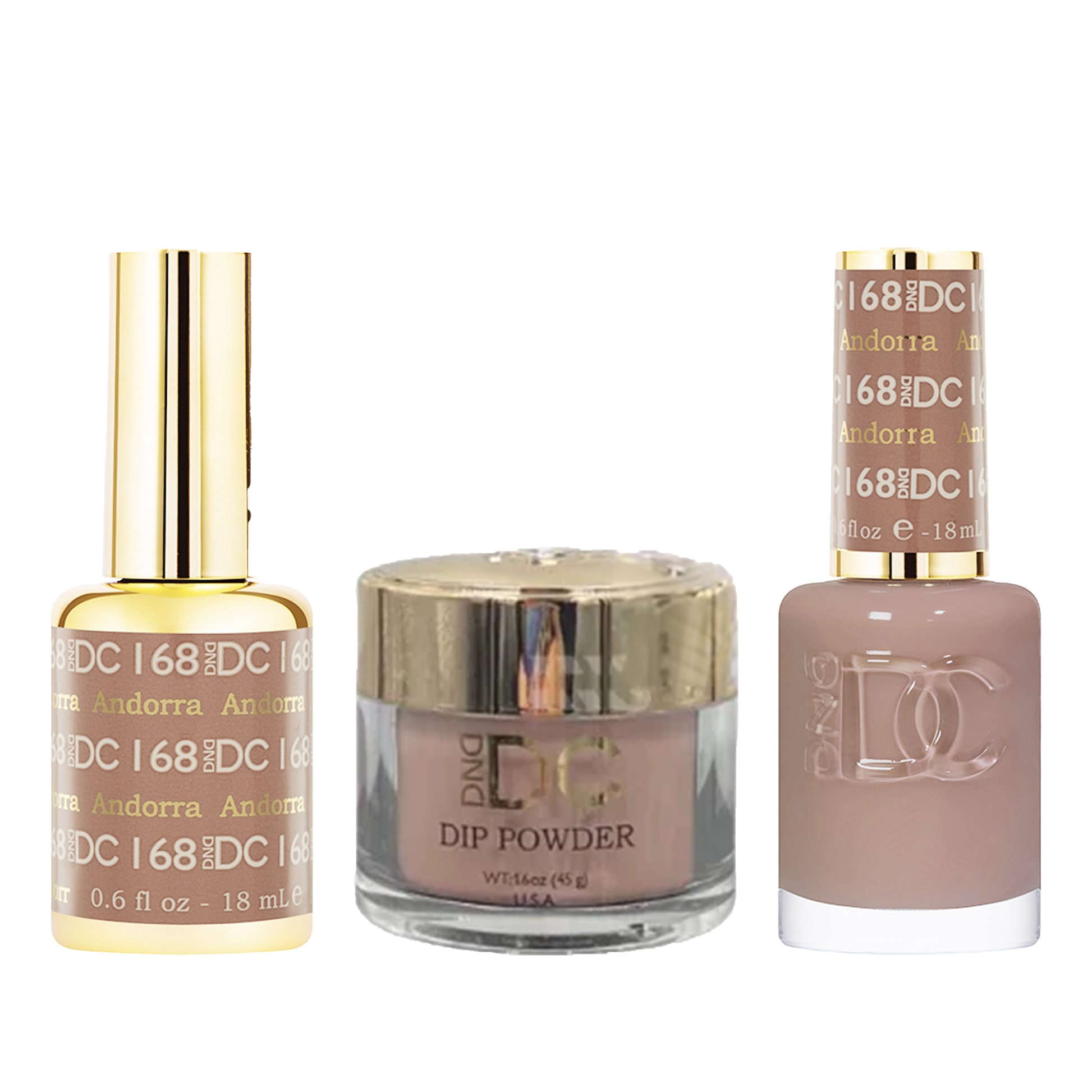 DND DC Trio 168 Essential includes a gel polish, a matching lacquer and powder. The set provides a complete solution for a professional manicure with a long-lasting and beautiful color.