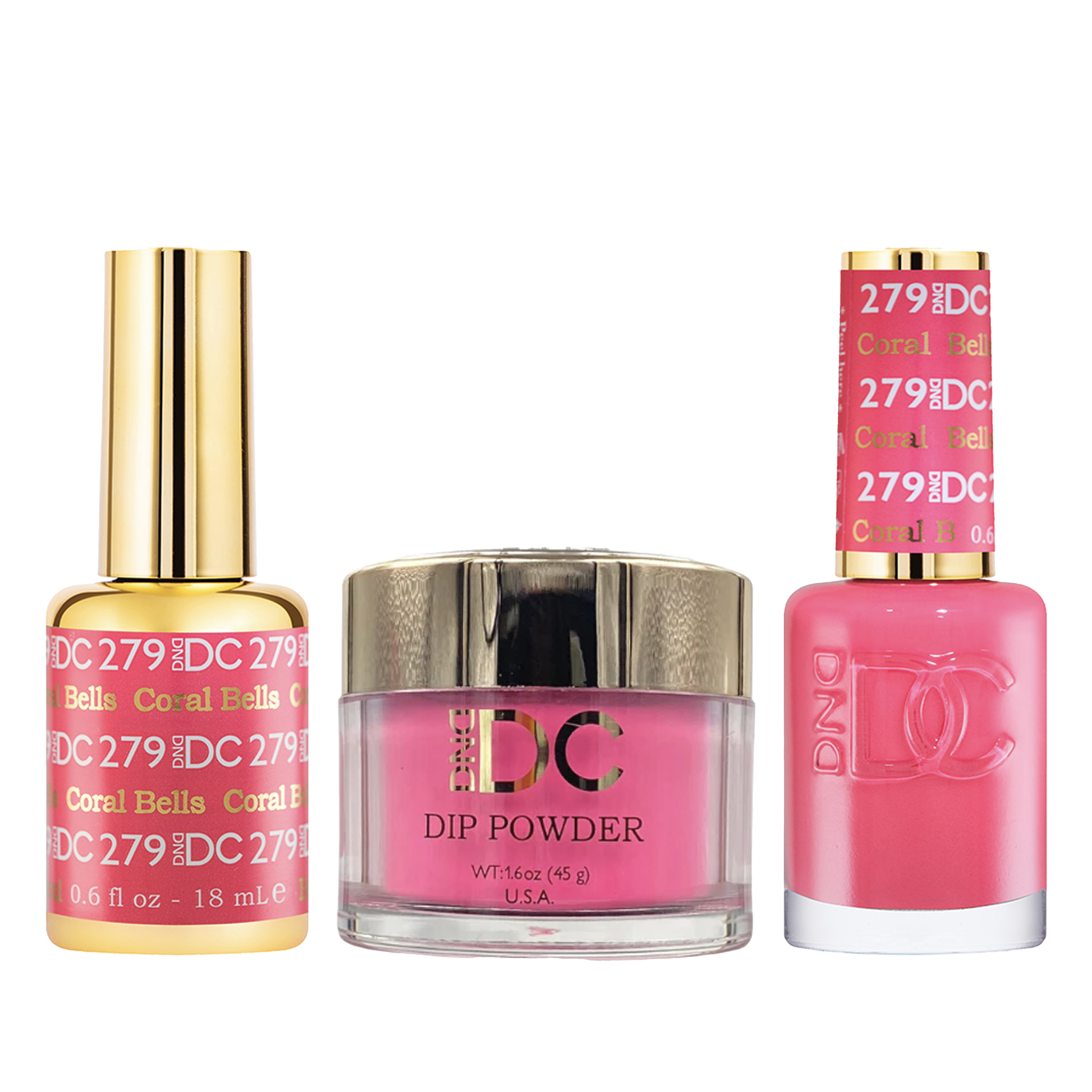 DND DC Trio 279 Essential includes a gel polish, a matching lacquer and powder. The set provides a complete solution for a professional manicure with a long-lasting and beautiful color.
