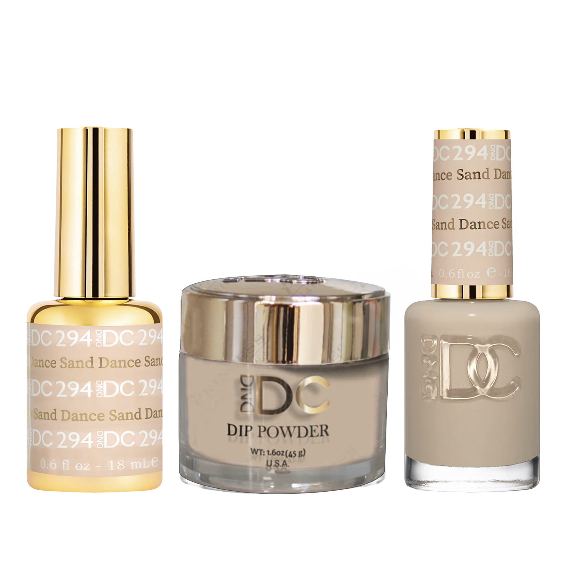 DND DC Trio 294 Sand Dance includes a gel polish, a matching lacquer and powder. The set provides a complete solution for a professional manicure with a long-lasting and beautiful color.