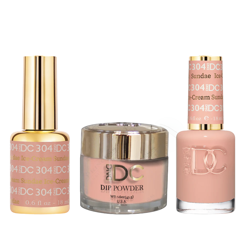 DND DC Trio 304 Ice Cream Sundae includes a gel polish, a matching lacquer and powder. The set provides a complete solution for a professional manicure with a long-lasting and beautiful color.