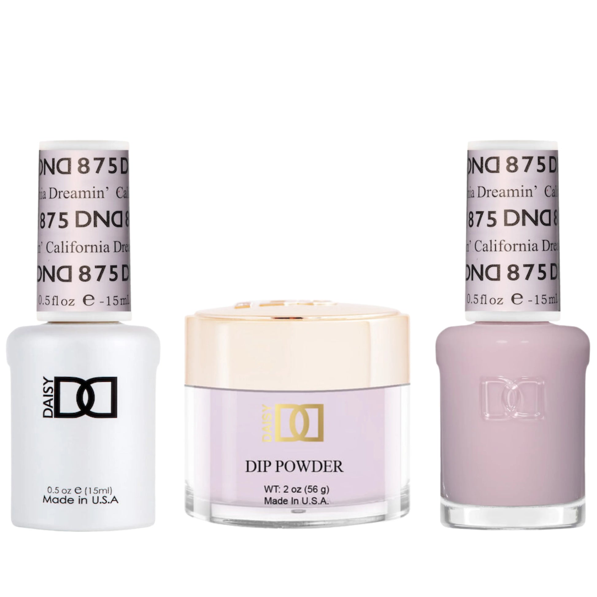 Discover the ultimate nail trio with the DND Trio in "875 California Dreamin'." This set includes a vibrant nail lacquer, a durable gel polish, and a long-lasting dip powder for the perfect manicure. Get beautiful color and long-lasting results with each use!