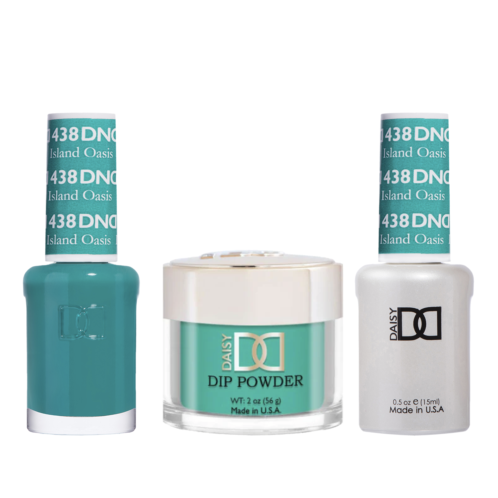 DND Trio in shade 438 Island Oasis is a luxurious nail color that comprises of a gel, dip, and lacquer in an elegant blue hue. The unique shade is perfect for those who want to add a touch of sophistication to their manicure. The trio promises long-lasting, vibrant color that is sure to turn heads, with a finish that sparkles in the light.