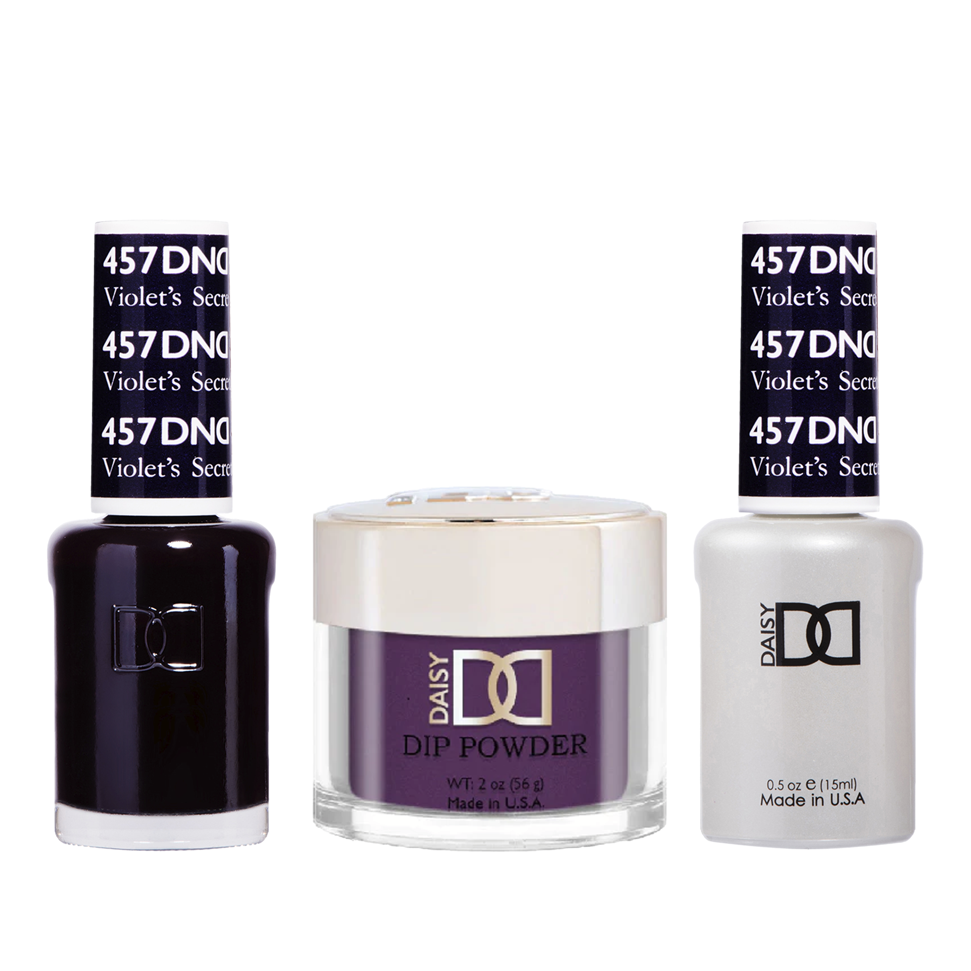 DND Trio - 457 Violet's Secret is a professional-grade nail lacquer, dip powder, and gel polish set in a beautiful shade of violet. This mysterious and elegant color is perfect for adding a touch of sophistication to any look. The set includes three formulas that work together to provide long-lasting, glossy color that is chip-resistant and easy to apply.
