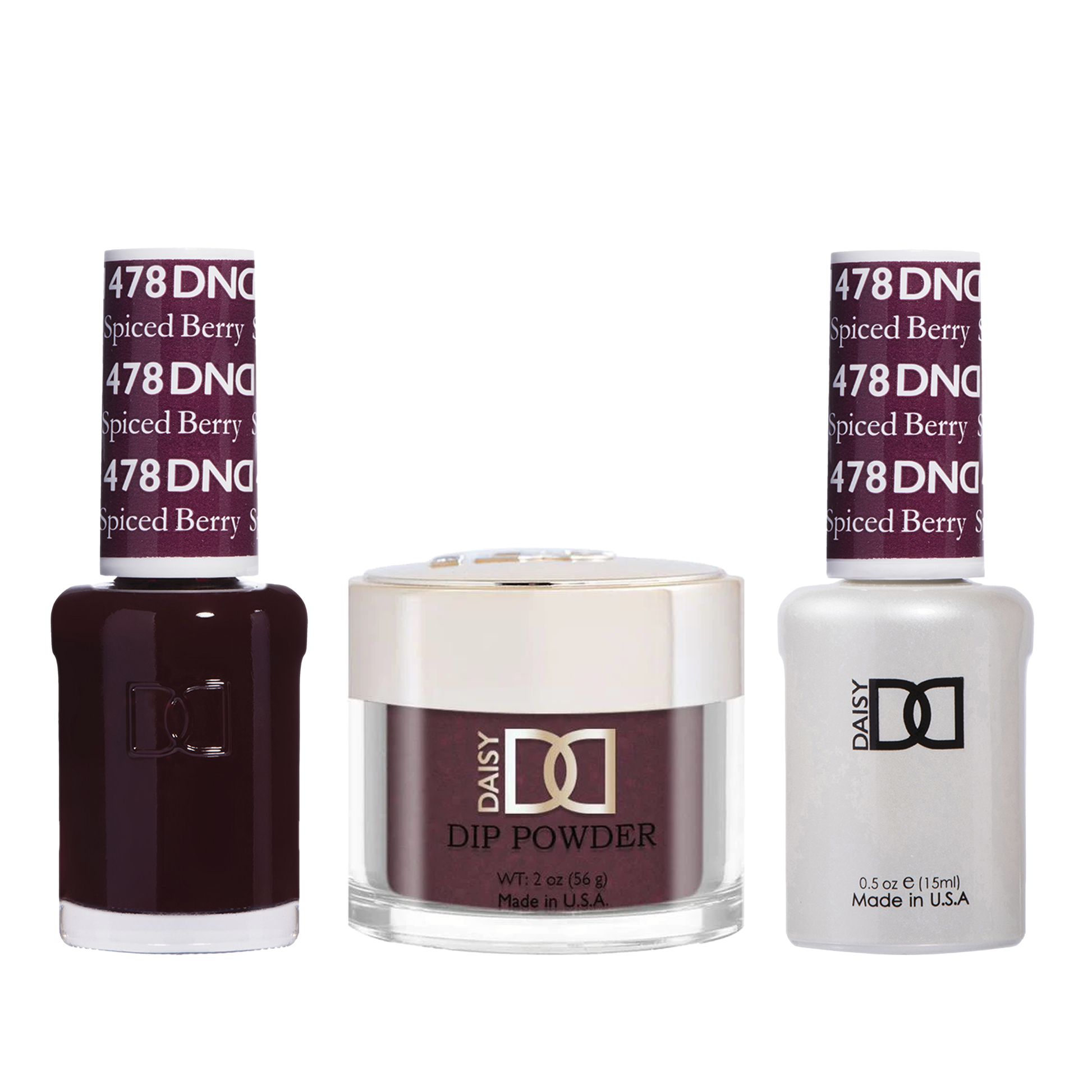 ND Trio - 478 Spiced Berry is a professional-grade nail lacquer, dip powder, and gel polish set in a rich, warm berry shade. This sophisticated color is perfect for adding a touch of elegance to any look. The set includes three formulas that work together to provide long-lasting, glossy color that is chip-resistant and easy to apply.