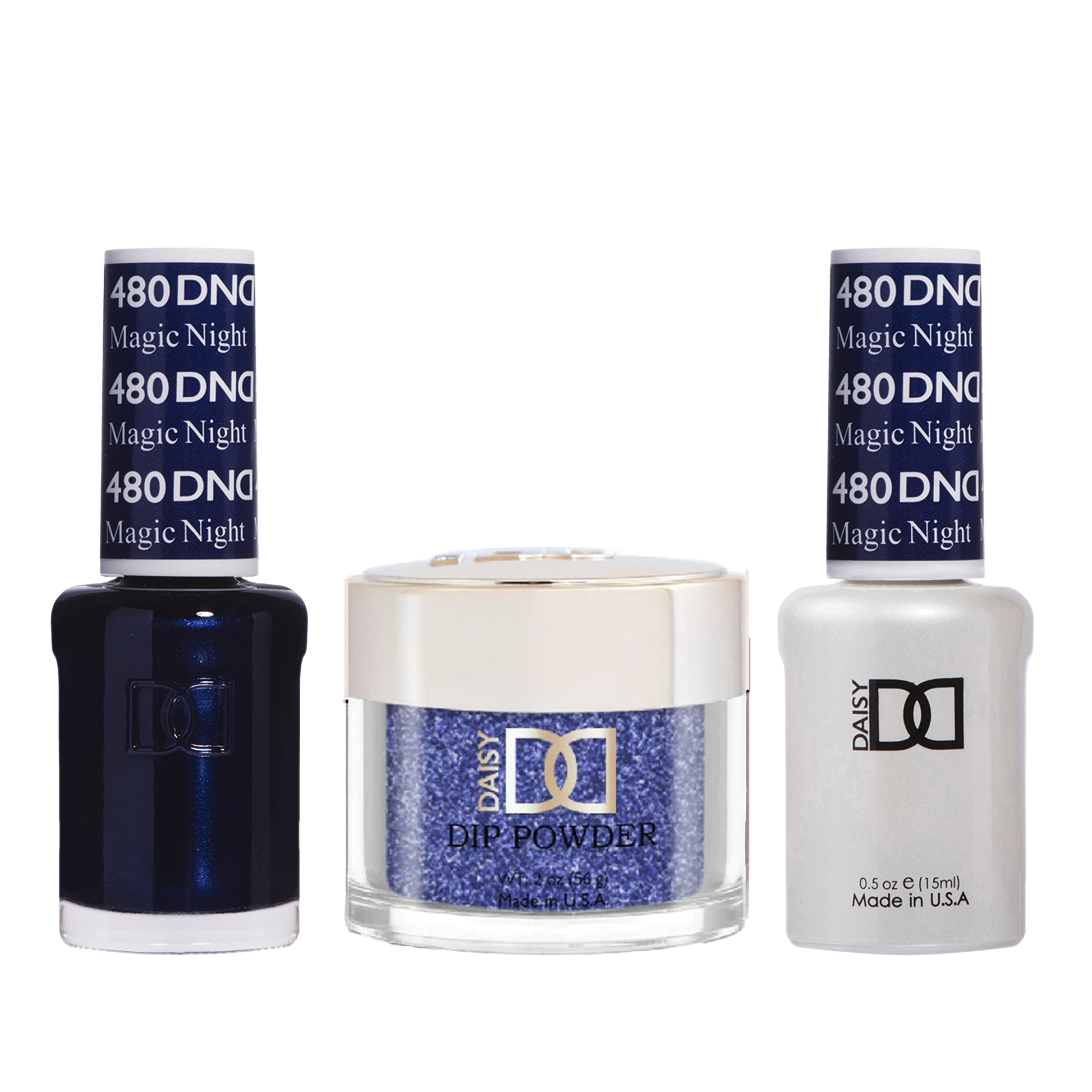 DND Trio - 480 Magic Night is a professional-grade nail lacquer, dip powder, and gel polish set in a stunning shade of blue. This deep and mysterious color is perfect for adding a touch of sophistication to any look. The set includes three formulas that work together to provide long-lasting, glossy color that is chip-resistant and easy to apply.