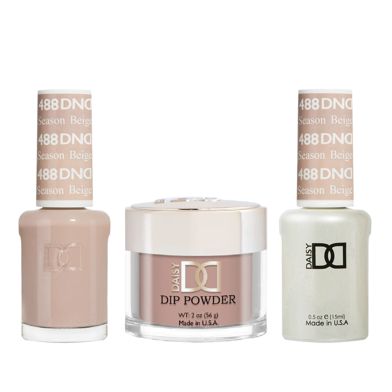 DND Trio - 488 Season Beige is a professional-grade nail lacquer, dip powder, and gel polish set in a beautiful shade of beige. This timeless color is perfect for creating elegant and sophisticated looks. The set includes three formulas that work together to provide a long-lasting, glossy finish that is chip-resistant and easy to apply. Enjoy a natural and refined look with the perfect blend of the dip powder, gel polish, and lacquer, and keep your nails looking fresh for up to two weeks.