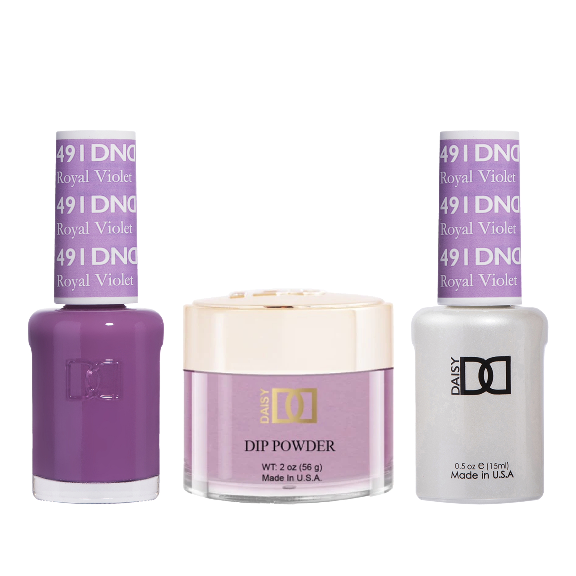 DND Trio - 491 Royal Violet is a set of professional-grade nail products that provide long-lasting, glossy color in a rich shade of violet. The set includes a dip powder, gel polish, and lacquer, making it easy to achieve a perfectly polished look that is chip-resistant and lasts for up to two weeks. Get ready to turn heads with this stunning shade of Royal Violet.