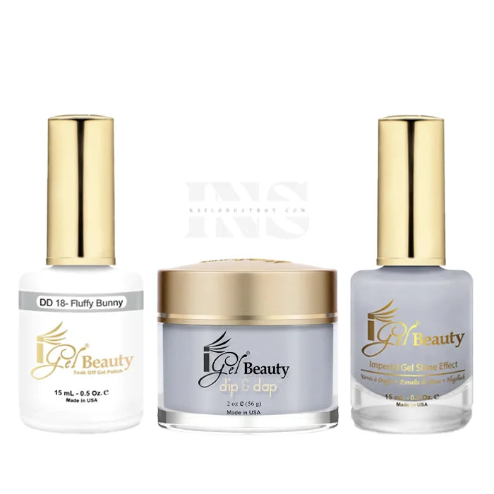iGEL Trio 018 Fluffy Bunny includes a gel polish, a matching lacquer and powder. The set provides a complete solution for a professional manicure with a long-lasting and beautiful color.