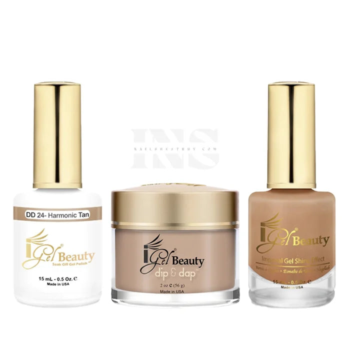 iGEL Trio 024 Harmonic Tan includes a gel polish, a matching lacquer and powder. The set provides a complete solution for a professional manicure with a long-lasting and beautiful color.