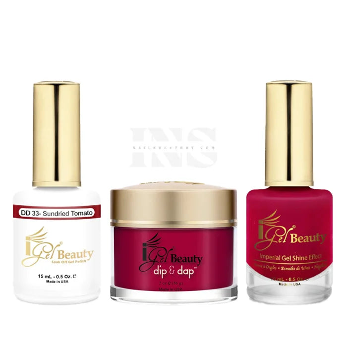 iGEL Trio 033 Sundried Tomato includes a gel polish, a matching lacquer and powder. The set provides a complete solution for a professional manicure with a long-lasting and beautiful color.