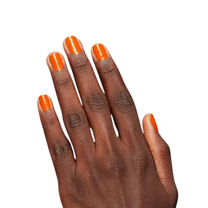 In my zesty era. This limited edition orange long-lasting nail polish shimmer will be your new main squeeze. It starts with a ripe orange base, then it kicks up the flavor with shiny gold flecks. You've got the juice.